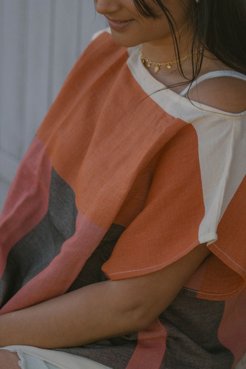 Ses couleurs chaudes, vous permettent de l'associer à un short, une jupe longue, un pantalon en lin, un jean, ou sur votre maillot de bain pour aller chercher une glace!